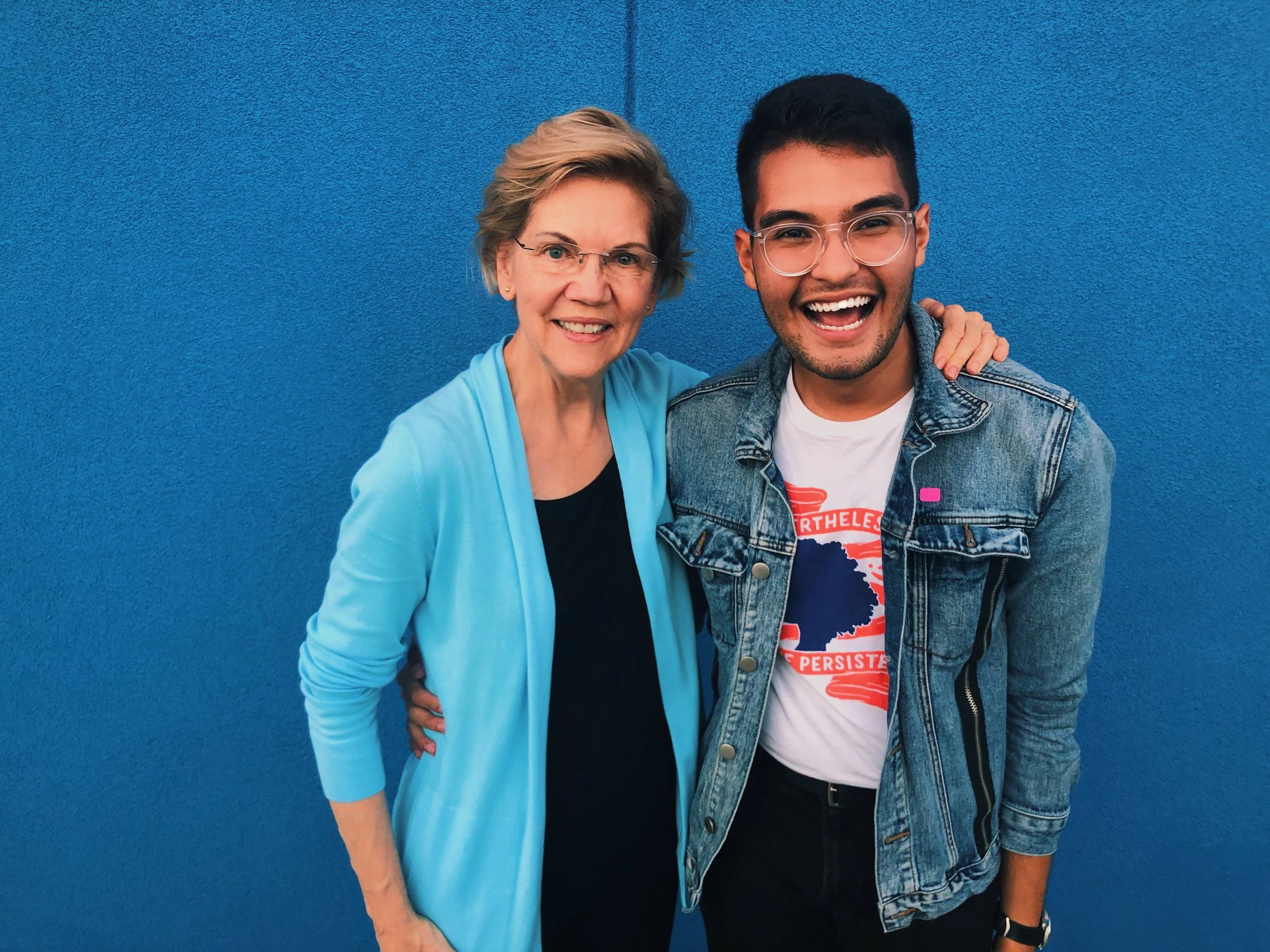 David Guirgis with U.S. Senator Elizabeth Warren at a Warren for President rally in Iowa , 2019.